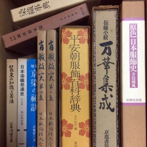 主なところで、平安朝服飾百科辞典、有職故実、原色日本服飾史、京染の秘訣、小袖文様、紬、輪島漆器文様集などなど、買取させて頂きました。