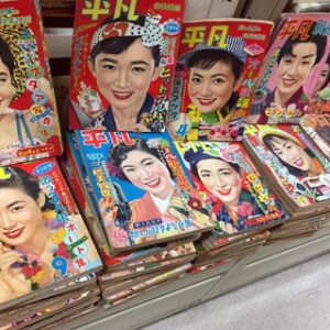 (戦前)(戦中)(戦後)の探偵小説・絶版漫画・芸能雑誌・探偵雑誌・新青年・少女画報・少女の友・宝石・少年倶楽部・冒険少年・少年日本・譚海・少年・冒険王・少年画報・漫画王・ぼくら・月刊誌付録・学年誌・平凡・明星などなど。
